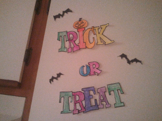I love October. It's my favorite month of the year. Mostly it's the beginning of the holiday season, which means I can decorate. Problem was, I didn't have any Halloween decorations. Thankfully there's a Dollar tree about a mile from here, and I have a bit of home made creativity on my side, so now we have awesome decorations. Take a look.
